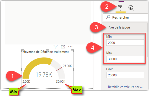 Visuel Jauge : Comment définir manuellement une valeur minimale et maximale