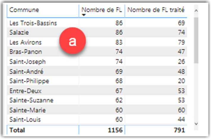 visuel type « table » qui ------------------------------------------------------------------------ b. Créer un 2nd visuel type « Graphique à barres groupées » qui compare les champs « Nombre de FL traité » et « Reste à traiter » · Renommer